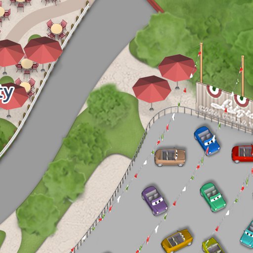 Casa Della Tires’ storage yard has been converted into a little piece of Italy, and Luigi’s freewheeling family can’t wait to welcome you aboard as they perform traditional “dances” from the old country. Ride along as your “car-eographed” roadster weaves and whirls to “The Tire-antella,” “Mambo Italiano” and more.