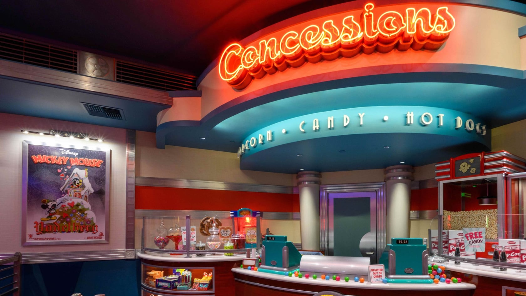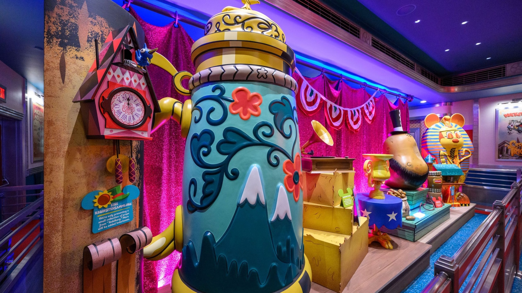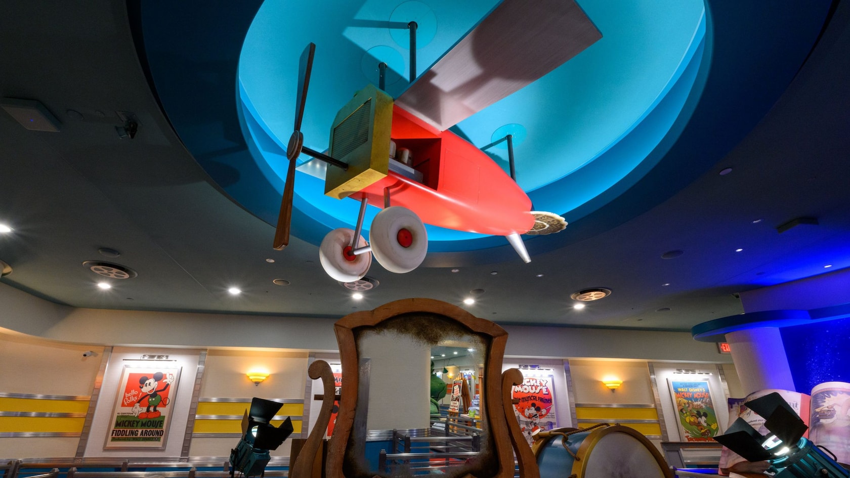 As you tour the lobby inside, you'll encounter "Mickey Through the Ears," an exploration of the illustrious film career of the world's most famous mouse, featuring movie props and memorabilia.