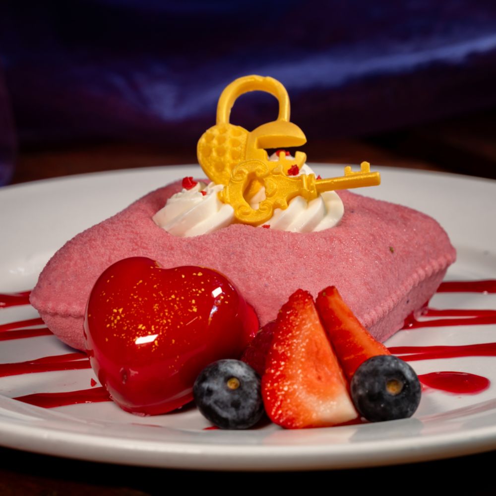 - Duo of Hearts – Two Hearts: one with Dark Chocolate Mousse, Berry Compote Filling and a Shortbread Cookie Base, and one with White Chocolate Mousse, Mango Passion Fruit Filling and a Shortbread Cookie Base, served with Fresh Berries